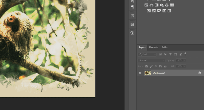 Right here’s what we see once we flatten the picture. All of the layers disappear and I’m left with a single Background layer.