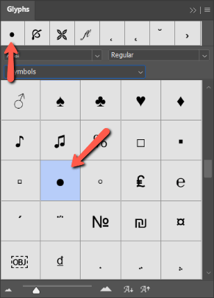 There is one more option inside Photoshop for finding bullet points. You can find them in the Glyphs menu.