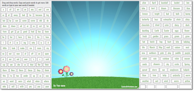 The fabulous Eric Curts has created a Springtime Magnetic Poetry template using Google Drawings. This is an easy drag-and-drop activity that features a blank, spring canvas in the center of the screen where students can drag words. On the left side are 100 standard (non-themed) words in alphabetical order pulled from the Dolch Word List. On the right side are 78 springtime-themed words in alphabetical order. Students simply begin to “play” with the words to create their spring poem. The words can be copied and pasted if needed more than once. You can make a copy of the template to use with your class here.