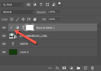 All you have to do is click on the icon to activate it. The crossed-out part will disappear and the icon will be highlighted. Now the black and white adjustment will only be applied to the layer directly underneath it in the layers panel.