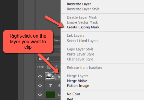 Another way to add a clipping mask is to right-click on the layer you want to clip. Then choose Create Clipping Mask from the menu that appears.