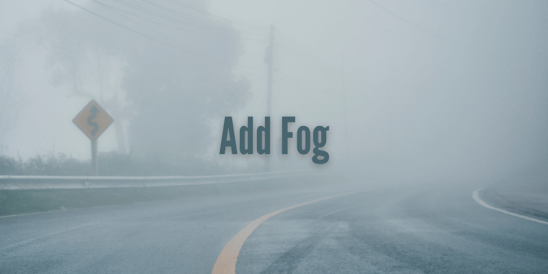 At this point, it looks like fog but it also looks like the fog has been evenly plastered across the front of our image. That’s not what fog looks like in real life. Things that are closer to you have less fog rolling in front of them and the fog is thicker in front of things that are farther away.
