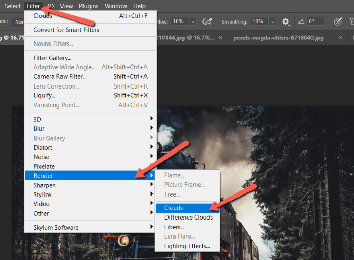 We’re going to use the render clouds tool to create the fog effect. You can learn more about this tool in our tutorial on how to add clouds to a photo in Photoshop.