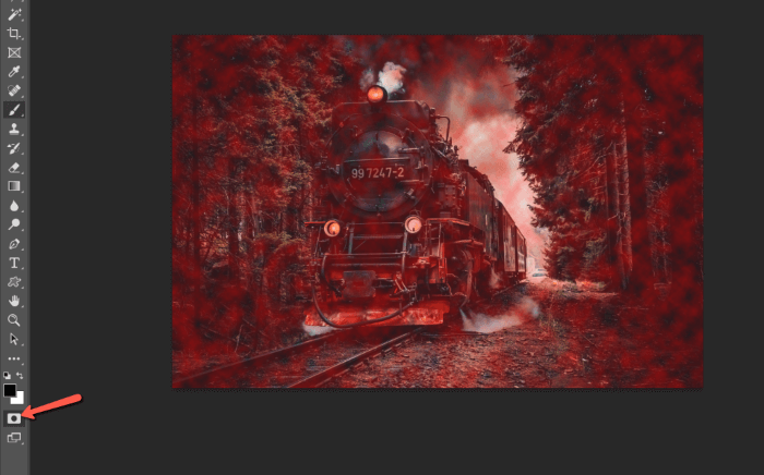 You’ll see this crazy red selection appear. Click the Quick Mask Mode button or hit Q on the keyboard again to exit the mode.