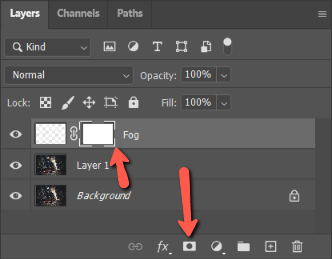 With this in mind, let’s refine our fog with a mask. With the fog layer selected, click the Mask button at the bottom of the Layers panel. You’ll see a white mask appear linked to the fog layer.