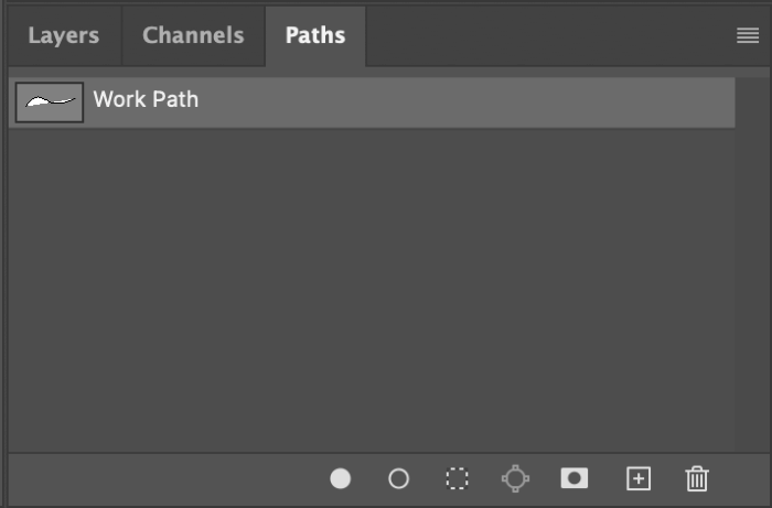All the work paths you’ve created will be listed in this panel, and you can use the row of buttons along the bottom of the panel to apply various commands using the work path.