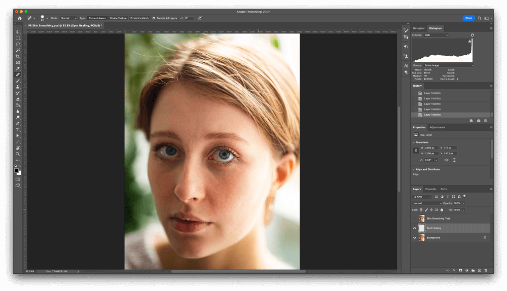 Earlier than you get began with the Pores and skin Smoothing neural filter, it’s a good suggestion to take away any massive blemishes out of your topic’s pores and skin.