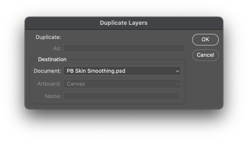 Within the Duplicate Layers dialog field, guarantee that the Vacation spot doc is your present working doc, and click on OK.