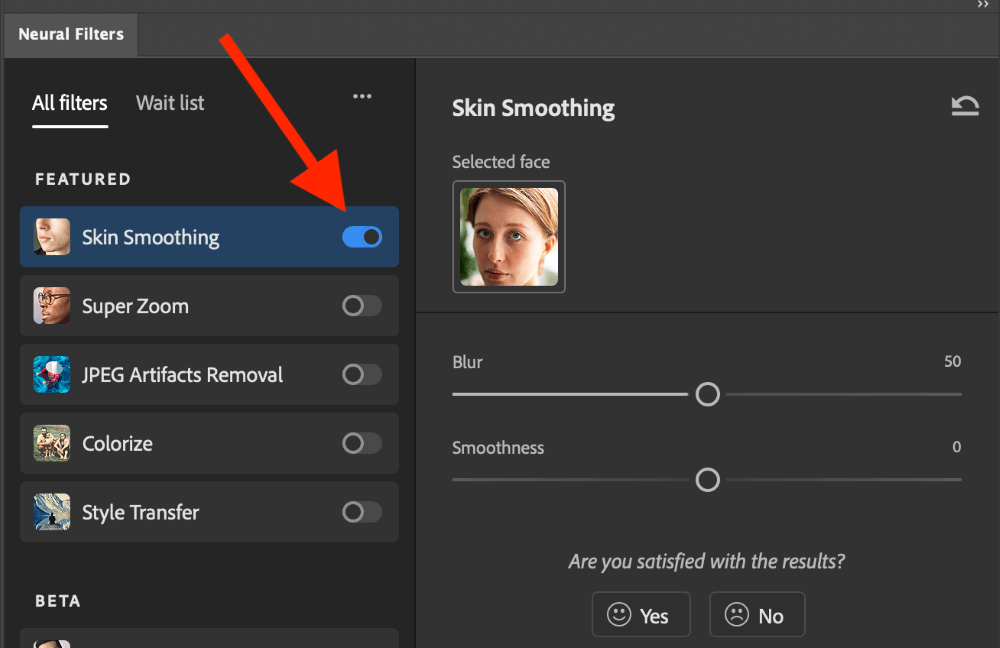 • Step 2: Launch the Pores and skin Smoothing Neural Filter.
