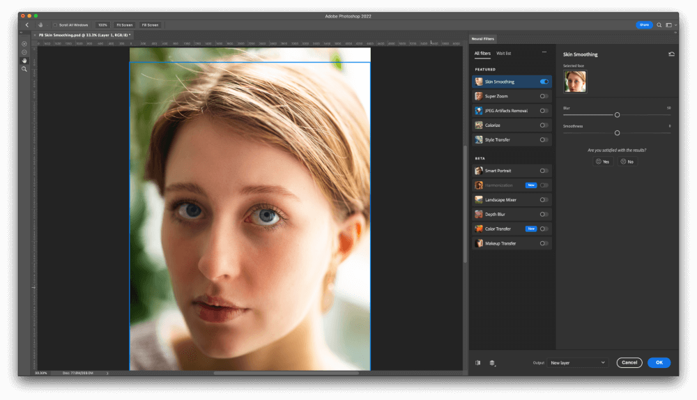 Smoothing Pores and skin in Photoshop With Neural Filters