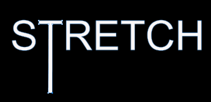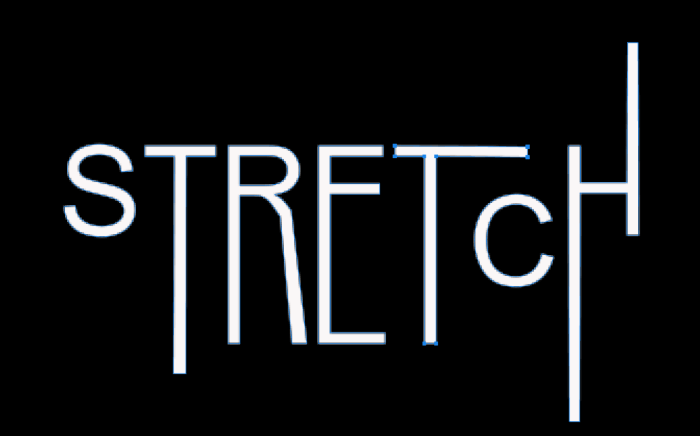 Stretching with the rework instrument simply lets you pull the letters out (or up or down) uniformly. We need to stretch solely items of the letters for this impact.